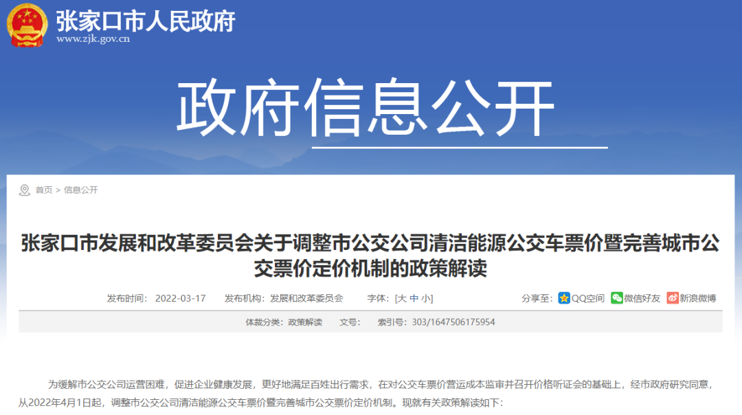 張家口發(fā)布公交車(chē)票價(jià)調整公告3月17日,張家口發(fā)展和改革委員會(huì )發(fā)布了關(guān)于調整市公交公司清潔能源公交車(chē)票價(jià)的消息,從2022年4月1 日起,張家口的公交車(chē)票價(jià)將進(jìn)入2元時(shí)代! 具體調整方案 一、零票價(jià)格調整 清潔能源公交車(chē)零票價(jià)格每人次由1元調整為2元。 二、公交卡價(jià)格調整 清潔能源公交車(chē)普通零票卡(A卡)票價(jià)繼續實(shí)行8折優(yōu)惠; 職工月票卡(B卡)由40元/月.120次和60元/月.180次,統一調整為80元/月.180次; 學(xué)生月票卡(C卡)由30元/月.120次和50元/月.180次,統一調整為60元/月.180次。 三、特困戶(hù)、低保戶(hù)特惠月票 特困戶(hù)和低保戶(hù)家庭成員月票價(jià)格為60元/月.180次; 特困戶(hù)和低保戶(hù)家庭學(xué)生月票價(jià)格為50元/月.180次。 另外,今后市主城區新開(kāi)通的城市公交線(xiàn)路,凡擬定票價(jià)不超過(guò)2元(含2元)的,不再舉行制定公交票價(jià)聽(tīng)證會(huì ),按有關(guān)程序核定。 張家口公交車(chē)票價(jià)自1998年一元一票制到如今,清潔能源的氫燃料電車(chē)公交車(chē)調價(jià)為2元也算是良心票價(jià)了,也就是說(shuō)燃油的舊公交應該還是1元。據小編了解到,河北省不少地方的公交票早已上調,在石家莊、秦皇島、廊坊、唐山、邢臺、保定等地,公交普通車(chē)車(chē)票一元,空調車(chē)或空調期公交票價(jià)兩元的現象早已是常態(tài)。 目前,全市清潔能源氫燃料公交車(chē)數量達到339輛,遍布市區內1路、2路、10路、33路等多條公交路線(xiàn),還為冬奧運輸工作做了不小的貢獻。寬敞又舒適、零排放噪音少,獲得大家一致好評。 |